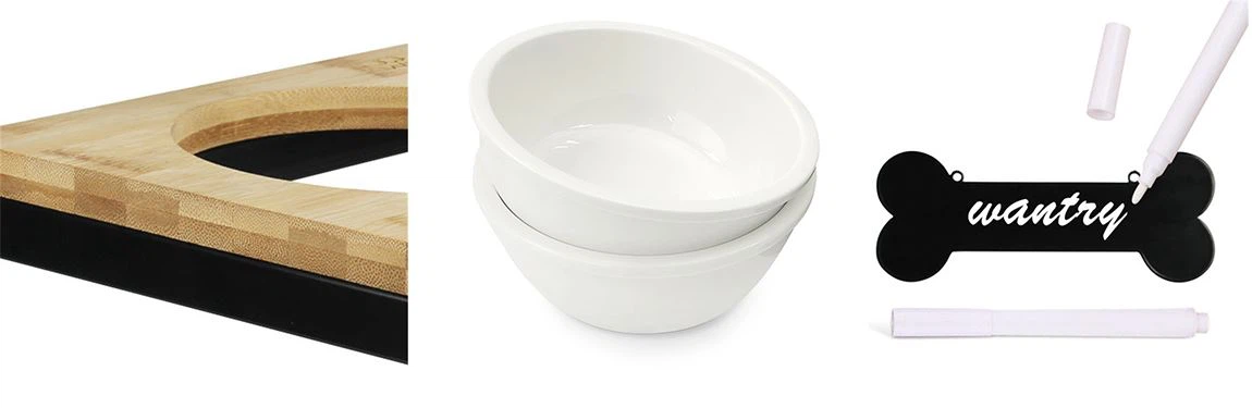 1.Removable Bowls:Make mealtime even more fantastic for your four-legged friend with this dog bowls, each raised dog bowl openning diameter with rim 7.5 inches, 5.5 inches bottom dia. and 2.7 inches height,it's your best choice for your pet's feeding time